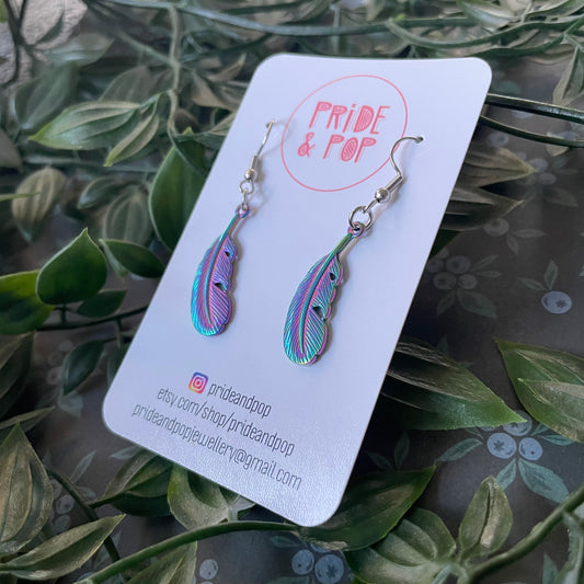 Rainbow Stainless Steel Feather Dangles
