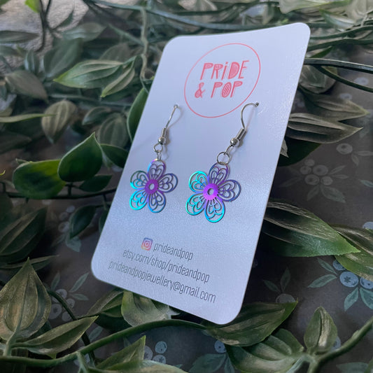 Rainbow Stainless Steel Flower Dangles