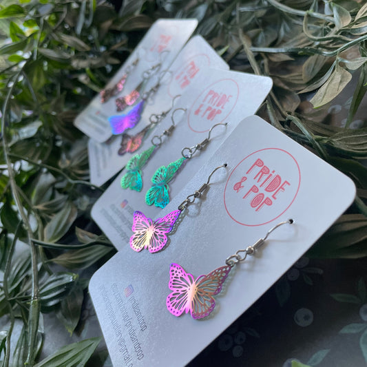 Rainbow Stainless Steel Butterfly Dangles